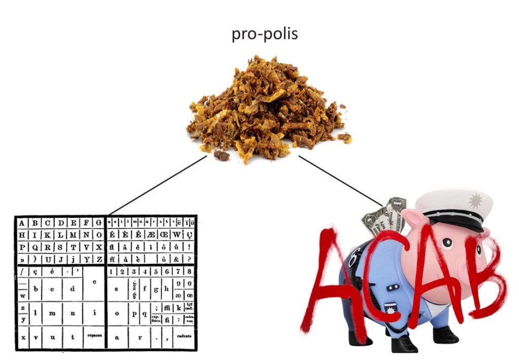 « Il répondit au zèle des abeilles ambitieuses : Si c’est pour faire partie d’une secte d’insectes au but inné, non merci ! Je préfère encore le neck tard que que le cou tôt à tartiner [..] Les abeilles vendent la pro-polis (pour la typo, pas la milice). »