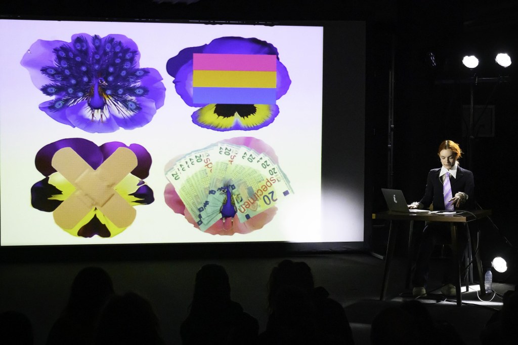 Une professeure expose sa théorie au public, dans un registre pseudo-scientifique, humoristique, poétique et politique. Le blé, l’oseille et le bouleau, végétaux aux noms faisant référence à l’argent et au travail, se révèlent être les alliés métaphoriques d’un discours anticapitaliste à propos de l’exploitation des corps et des ressources naturelles, du mercantilisme, de l’agriculture et de la circulation des énergies. Au moyen d’analogies, de jeux de mots, de superpositions d’images et d’allitérations, les concepts et les symboles sont utilisés ici comme des matériaux malléables, dont le sens ne cesse de se métamorphoser, se contaminer, se multiplier, pour proposer un questionnement ludique sur les modes de discours qui fondent un savoir dit légitime.
