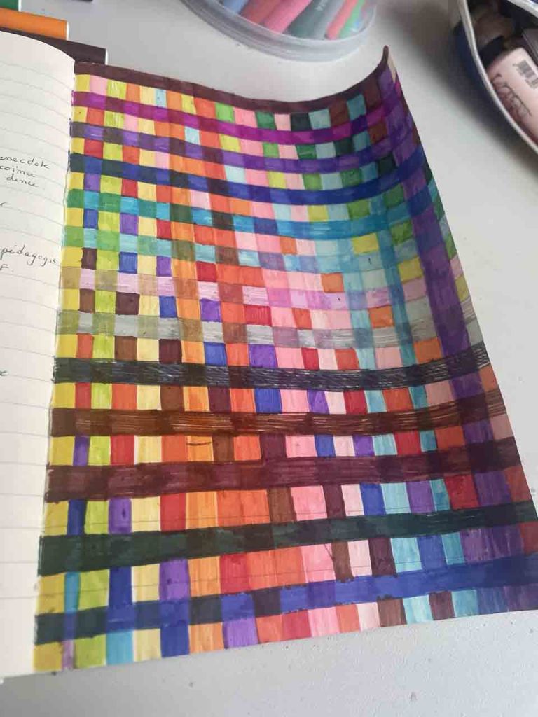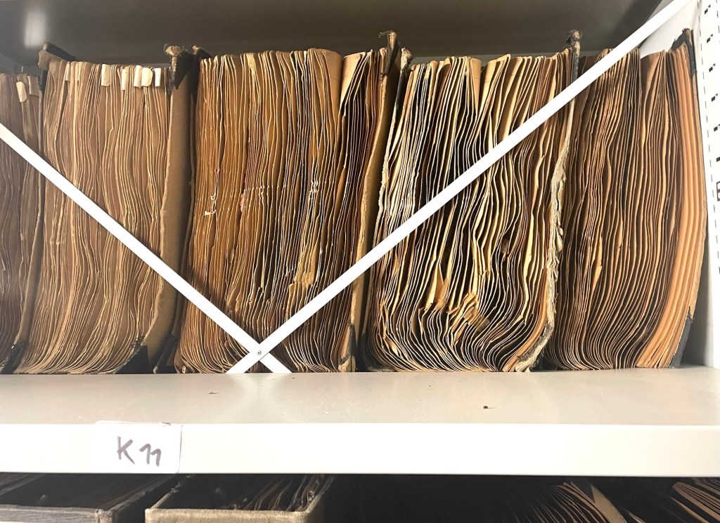 Lors d’une visite à la tissuthèque de Sainte-Croix-aux-Mines en 2024, j’ai pu découvrir les archives textiles du Val d’Argent. Celles-ci abritent des millions d’échantillons textiles produits entre la fin du XVIIIè siècle et le début du XXIè siècle par près de 150 manufactures, ainsi qu’une multitude de documents complémentaires, écrits ou dessinés. Ces archives offrent un panorama détaillé de différents aspects de l’histoire locale par le prisme de l’industrie textile, qu’il s’agisse du contexte politique et économique, des dynamiques sociales, des relations entre ouvriers et patrons, des flux entre capitale et province ou des phénomènes de mode de l’époque. Dans ces archives, mon attention s’est portée particulièrement sur les échantillons textiles en eux mêmes, consignés dans des recueils. Chaque morceau de tissu a été minutieusement prélevé, répertorié et collé sur une page par l’administration de la manufacture l’ayant produit, dans le but de constituer des catalogues présentant l’étendue du savoir-faire et des collections aux client·e·s. Devenus documents d’archives, ce n’était pas leur vocation initiale : la plupart étaient destinés à être jetés lors des fermetures successives de manufactures. Sous leur apparente banalité, ces résidus du quotidien, issus du registre industriel et commercial, s’avèrent témoigner d’aspects complexes de l’histoire socio-industrielle locale. Selon les époques et les contextes politiques, les motifs changent, de l’austérité à la fantaisie. Les techniques tinctoriales et les importations de fibres influencent les rendus. J’ai été touchée par la variété des motifs, des couleurs, des matières et par la façon dont leur répertorisations elles-mêmes donnaient à voir des compositions aléatoires.