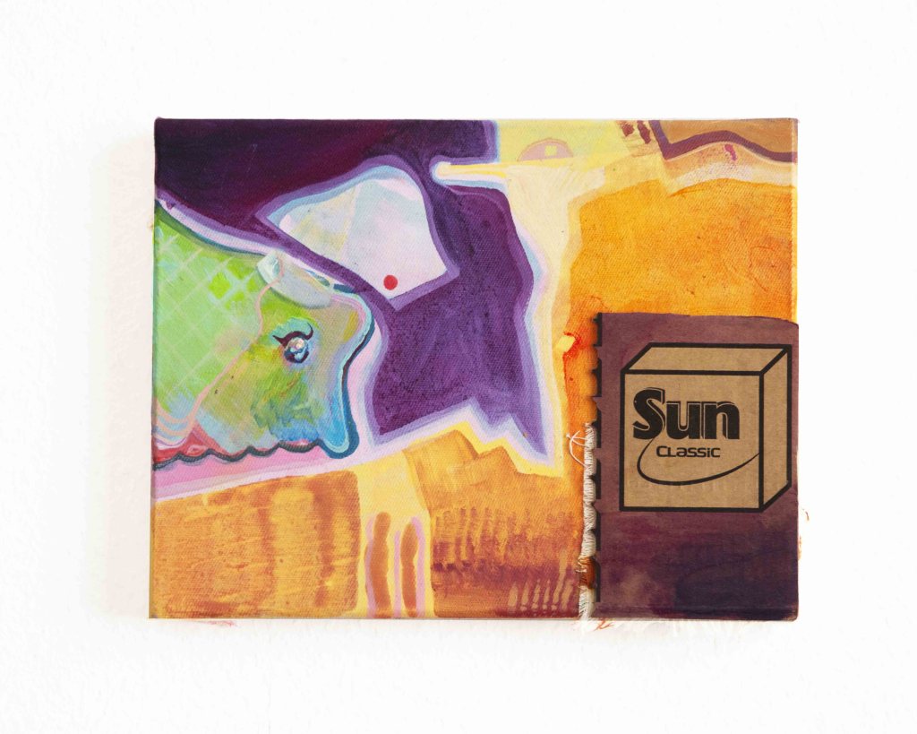 Les temps d’alevinage ★ peinture à l’huile et collage sur toile ★ 19 x 24 cm ★ 2025