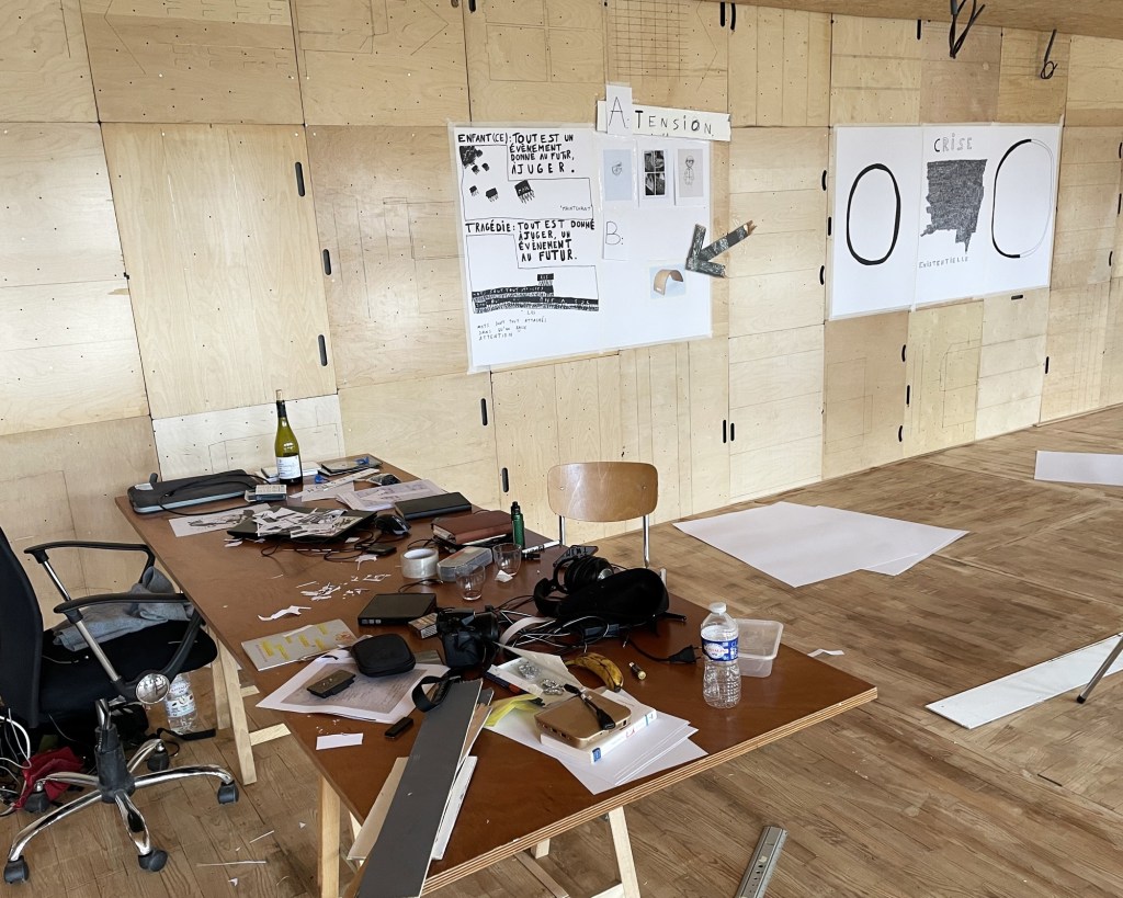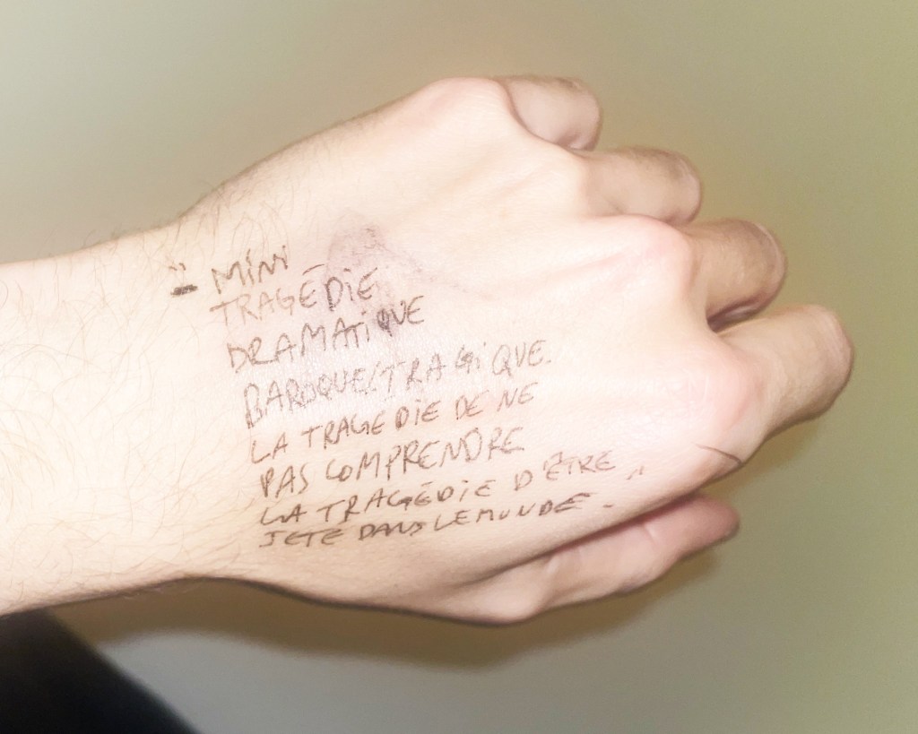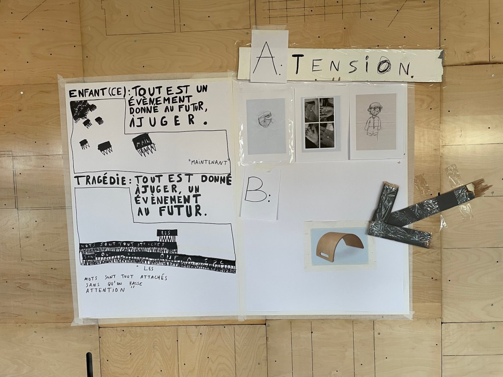 Nicolas a fait des dessins, vidéos et textes sur la crise, l’accident, l’attention : la tragédie de la vie.