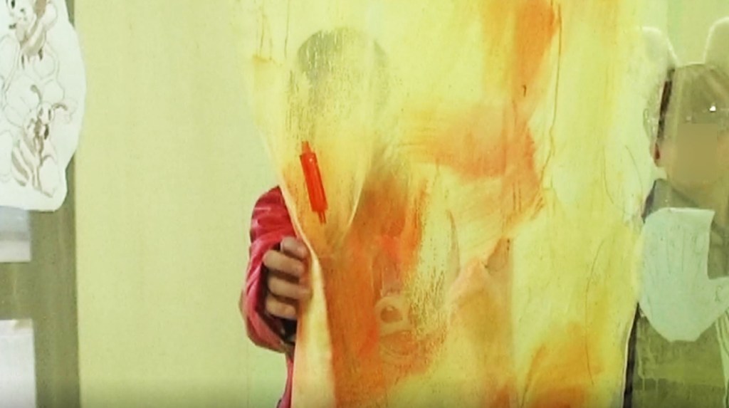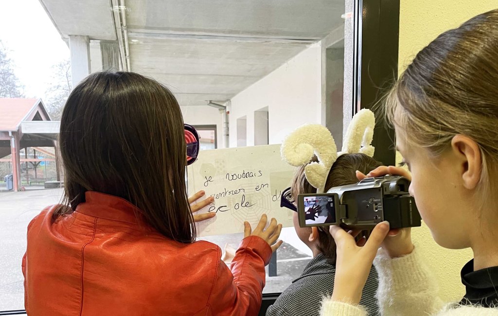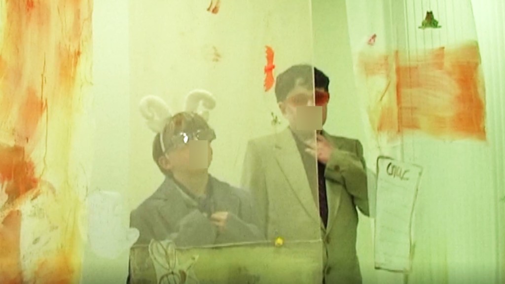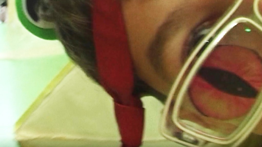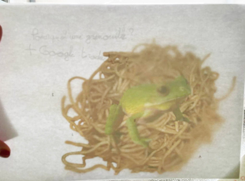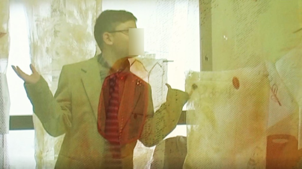 Photogrammes de la vidéo de la conférence-performance science-fiction à propos de L’enquête des abeilles messagères ★ caméra, acting, bruitages, réalisation par les 6èmes A au Collège de la Largue, montage par Anouk.P à Strasbourg ★ 5″ ★ filmée sur K-7 mini-DV ★ montrée au CRAC du 13 au 15 fèv. 2026
