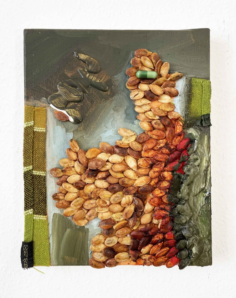 La poule courage ★ peinture à l’huile et collage sur toile ★ 2026