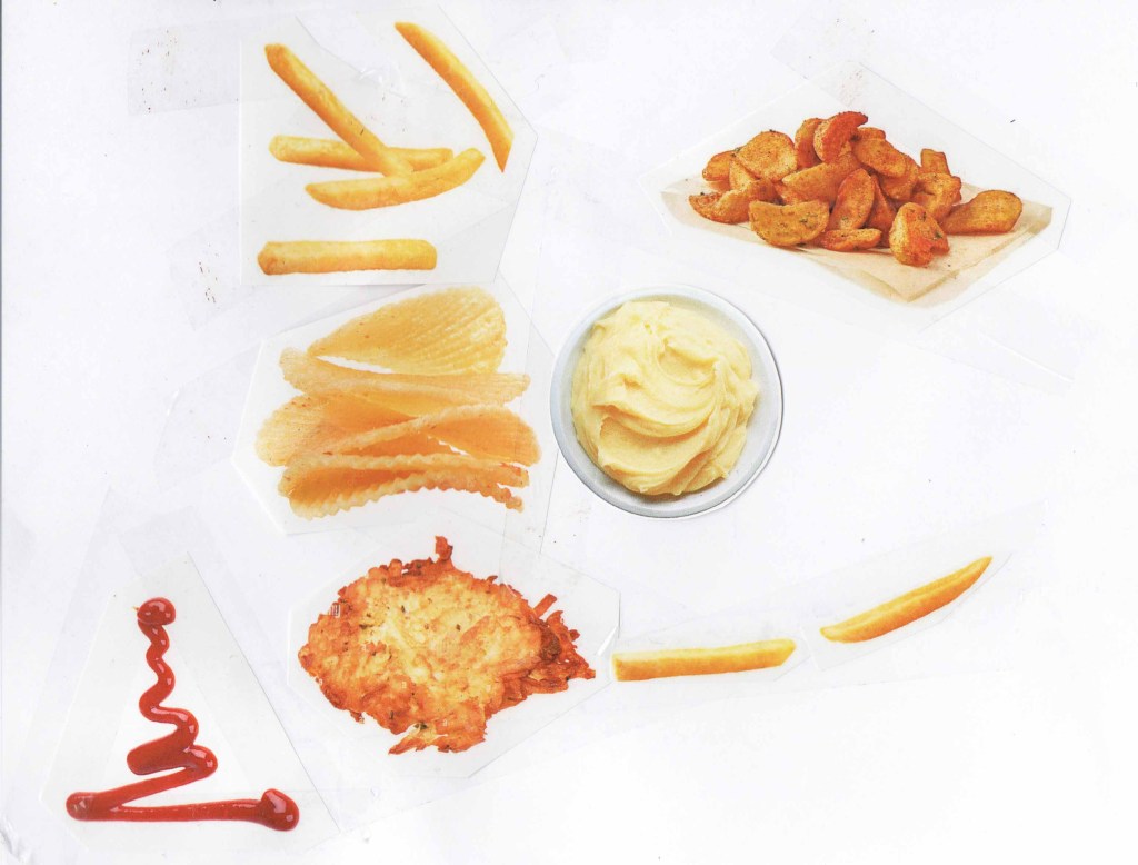 La patate contient beaucoup d’amidon, glucide aux propriétés collantes. C’est pourquoi j’utilise le collage – formel et sémantique – comme méthode de contamination. Le collage, au sens large, me permet de superposer et détourner des signes venus de champs hétérogènes. Je tente de digérer images, concepts et anecdotes glanées pour les réagencer en combinaisons plurivoques.